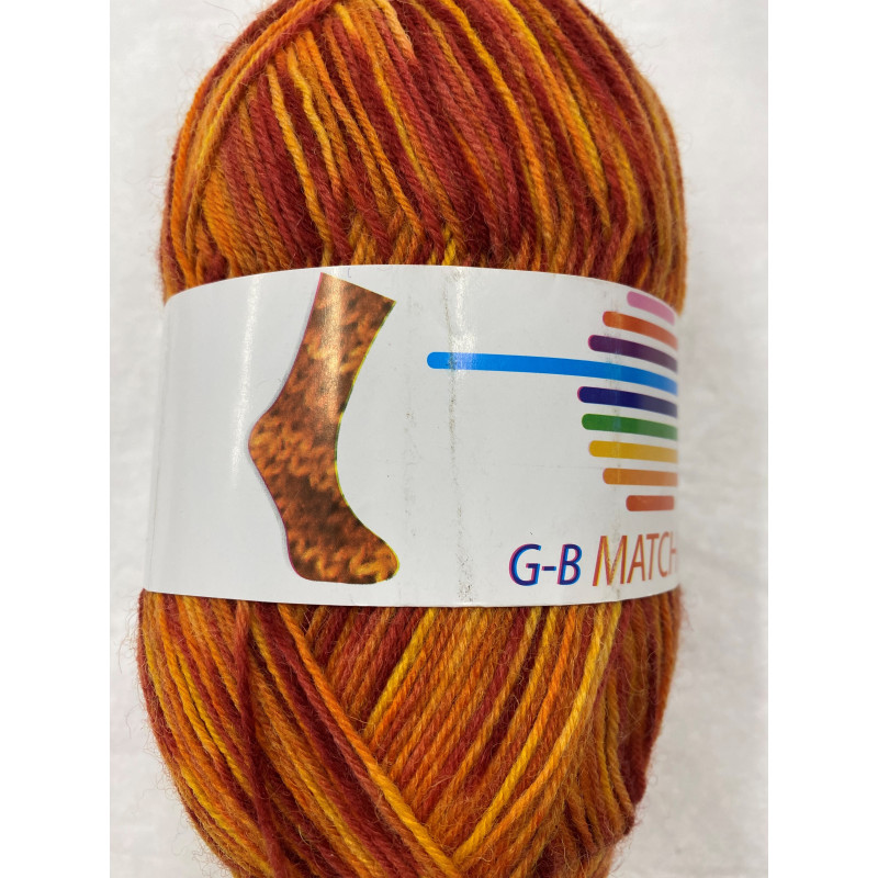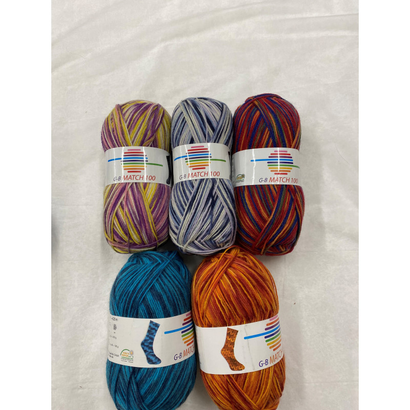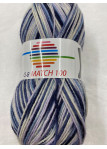 Flerfarvet strømpegarn 75% uld og 25% Polyamid.